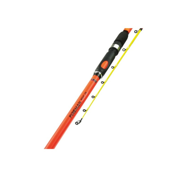 Fireman Boat Jig 30-80g 2.40m ir jaudīga makšķere, kas galvenokārt paredzēta dažādiem spiningošanas makšķerēšanas stiliem. Šī jaudīgo spiningu sērija ir paredzēta izmantot copējot no laivas jūrā ar vidēja izmēra pilkeriem, kā arī iekšējos ūdeņos ķerot, piemēram, samus ar smagākiem mānekļiem. Īsāki modeļi ir paredzēti makšķerēšanai no laivas, savukārt garāki ir ideāli piemēroti makšķerēšanai no krasta. Ielīmētā, labi redzamā, spilgti nokrāsotā spice garantē lielisku copes redzamību pat viļņos un vāja apgaismojuma apstākļos. Izturīgā, ātrā blanka nodrošina pārliecinošu zivs pieciršanu un pilnīgu kontroli pār lielām zivīm, savukārt modernais, ergonomiskais spoles turētājs un dalītais EVA rokturis nodrošina drošu satvērienu un lielisku makšķerēšanas komfortu. Izteiksmīgā oranžā krāsa piešķir makšķerēm unikālu, dizainu.
