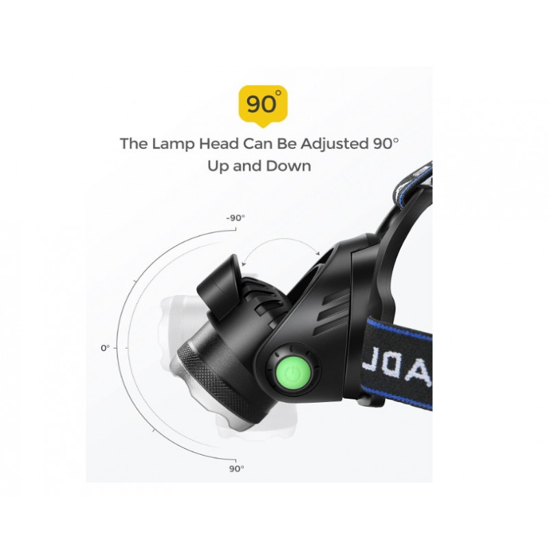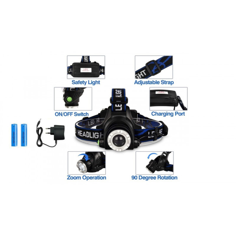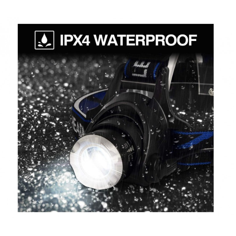 LED galvas lukturis ar zoom funkciju, izgatavots no augstākās kvalitātes materiāla. IPX4 ūdensizturīgs, šis lukturis ir drošs no ūdens šļakatām visos virzienos, to var izmantot lietus vai sniega laikā. 3 galvas luktura režīmi ļauj izvēlēties apgaismojuma režīmu starp īpaši spilgtu, spilgtu un mirgojošu SOS gaismu. Ļoti noderīga ir arī sarkana brīdinājuma gaisma luktura aizmugurē. Regulējams par 90° un tālummaiņas funkcija ļauj pielāgot apgaismojuma leņķi vai attālumu atbilstoši savām vajadzībām. Lukturi darbina 2 x 18650 uzlādējamas baterijas, kas pēc pilnas uzlādes var darboties līdz pat 4 stundām. Viegli regulējama elastīga galvas saite, kas ir saderīga ar visu cilvēku galvas izmēriem, mīksta, elastīga ir ērta valkāšanā.
