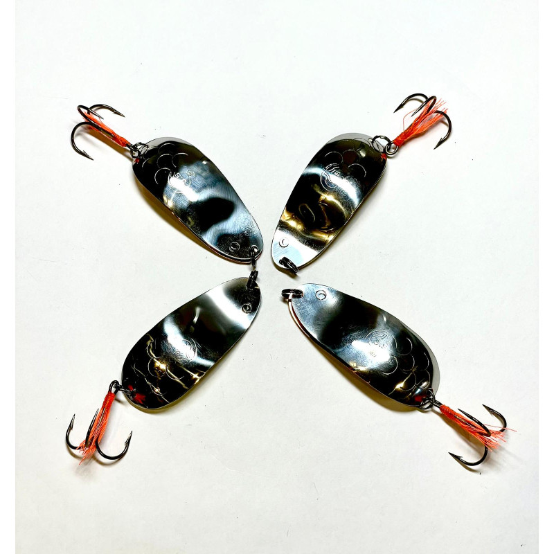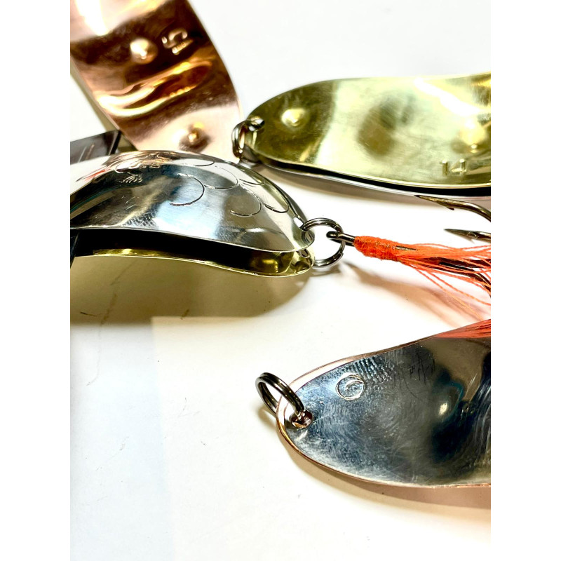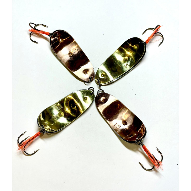 Leģendārā meistara Jāņa Sīpola roku darbs- vizuļi (šūpiņi) Divdaļīgie mazie, kas izgatavoti no bungu šķīvjiem vai misiņa, kapara, kā arī vara, niķeļa un cinka sakausējuma. Visiem izmantotajiem materiāliem piemīt izcila skaņas kvalitāte. Divpusēji un vienpusēji, kā arī dubultie, kas sitoties viens pret otru radīs interesantus graboņas efektus. Divpusējiem vizuļiem abas puses ir sakniedētas (nevis salodētas, kā parasti), tādējādi izmantotais materiāls nemaina savas skaņas īpašības, kā arī abas sakniedētās puses saglabā nelielu brīvkustību, tādējādi radot vibrējošas, grabošas skaņas papildus efektam. Aprīkoti ar augstākās kvalitātes VMC āķi trīsžuburi, kurš papildināts ar sarkanu sintētiskā diega astīti. Katram šūpiņam individuāls svara mērījums un uzsista gramāža, ko varēsiet piemeklēt pēc nepieciešamības dziļākām vai seklākām vietām. Gadu gaitā šī meistara roku darbi ir kļuvuši leģendāri un īpašu reklāmu neprasa.