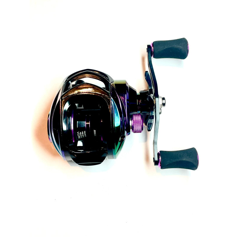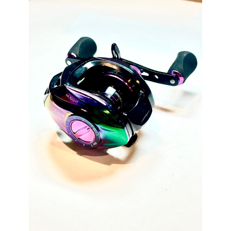 Jūsu iepirkumu grozs ir tukšs! Miracle Fish multiplikatora spole AK Right- zemā profila casting spole vieglām un vidējām ēsmām (parasti izmanto spiningojot vieglas ēsmas 7gr- 30gr, kā arī var izmanot pludiņmakšķerējot). Magnēstiskā bremze, kas regulējas 10 pozīcijās. Spoles korpuss ir izgatavots no grafīta, bet kasete no dzelzs. Tai ir 9+1 gultņi, un dubultais rokturis, kas ir novietots labajā pusē. Moderns dizains- hameleona krāsa.