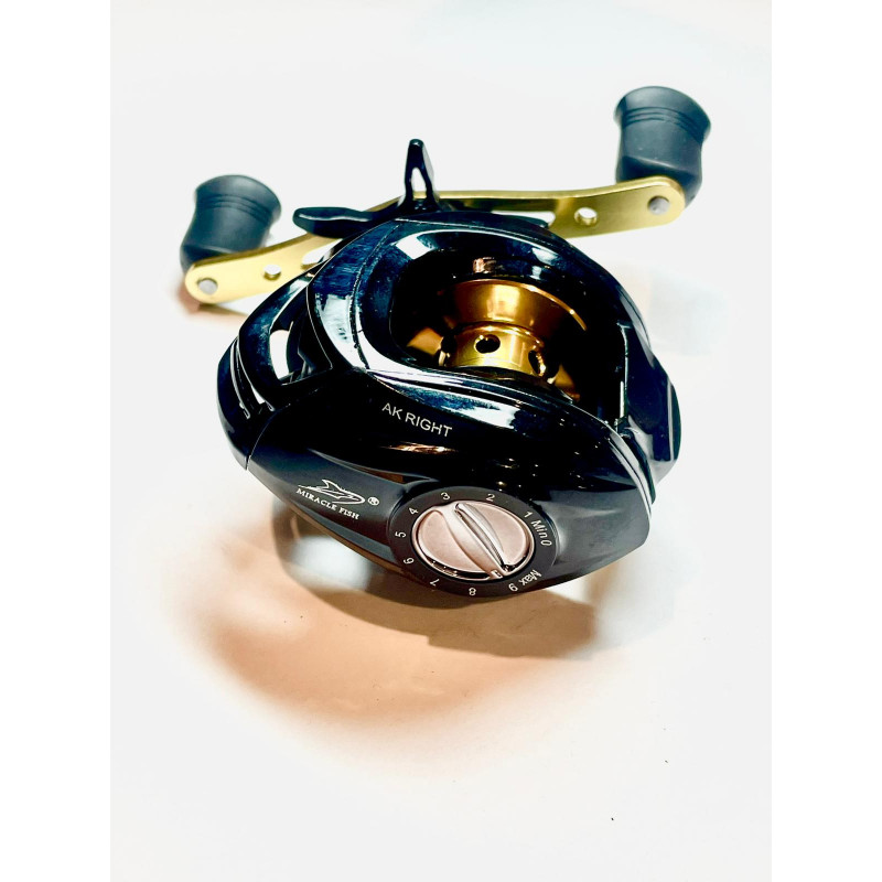 Jūsu iepirkumu grozs ir tukšs! Miracle Fish multiplikatora spole AK Right- zemā profila casting spole vieglām un vidējām ēsmām (parasti izmanto spiningojot vieglas ēsmas 7gr- 30gr, kā arī var izmanot pludiņmakšķerējot). Magnēstiskā bremze, kas regulējas 10 pozīcijās. Spoles korpuss ir izgatavots no grafīta, bet kasete no dzelzs. Tai ir 9+1 gultņi, un dubultais rokturis, kas ir novietots labajā pusē. Moderns dizains- melna+zelta krāsa.