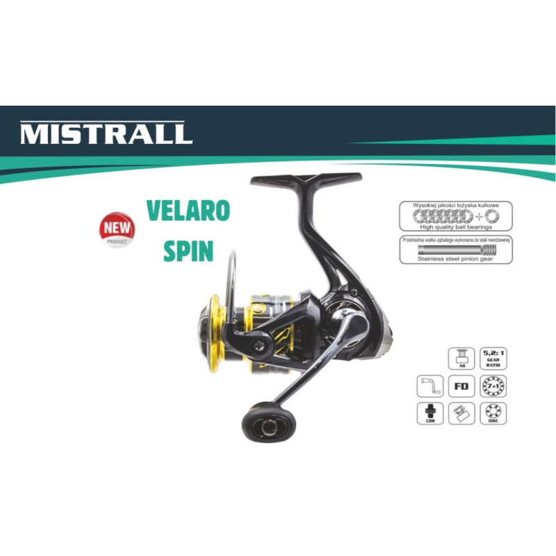 Mistrall Velaro Spin 3000 ir jaudīga un precīza spole, kas izceļas ar augstu meistarības kvalitāti un ilgmūžību. Spole aprīkota ar 7 viegliem lodīšu gultņiem + 1 pretgrieziena gultni, kas garantē ārkārtīgi vienmērīgu darbību pat pie lielas slodzes. Spole aprīkota precīzu priekšējo bremzi un ļoti labi līdzsvarotu rotoru, kas nodrošina gludu un vienmērīgu auklas uztīšanu. Velaro Spin ir lieliska izvēle spiningošanai un dažāda veida makšķerēšanas tehnikām, nodrošinot komfortu un kontroli gan iesācējiem, gan pieredzējušiem makšķerniekiem.