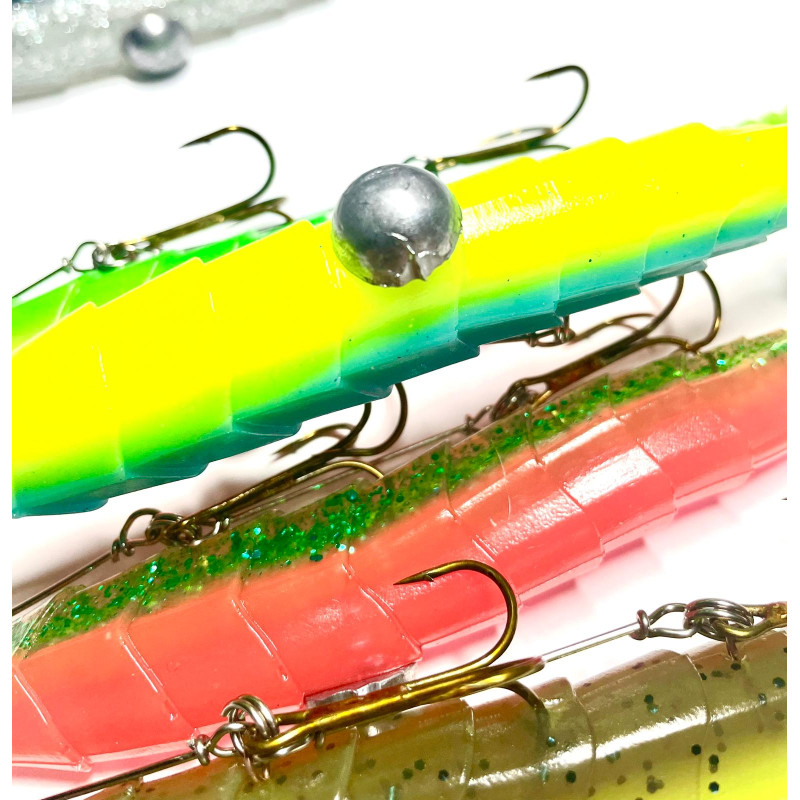 Jūsu iepirkumu grozs ir tukšs! Pilnībā aprīkota gumijas zivs Frap Geko 20cm (vietējā meistara ražojuma)- papildināta ar sistēmu, 2 gab trīsžuburu āķiem (Nr1 un Nr1/0) un 8gr atsvaru (lai māneklis ūdenī negrieztos riņķī). Īpaši Latvijas ūdeņiem piemēroti dažādi krāsojumi un gumijas cietības, kas padara šo mānekli elastīgāku un kustīgāku. Kopējais svars 56gr Pieejamas dažādas krāsas no veikalā esošā sortimenta (tas var mainīties).