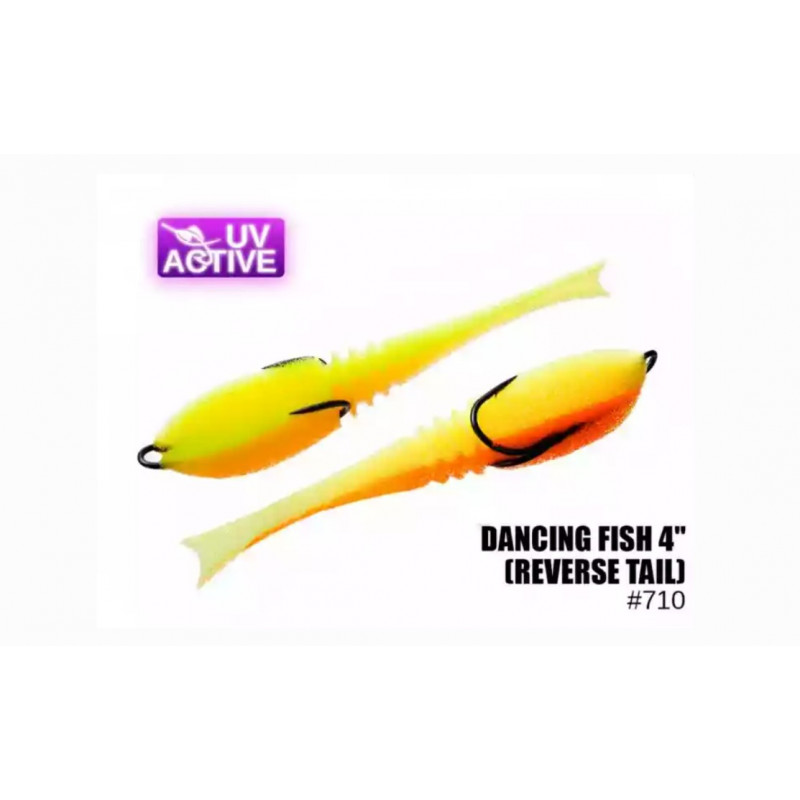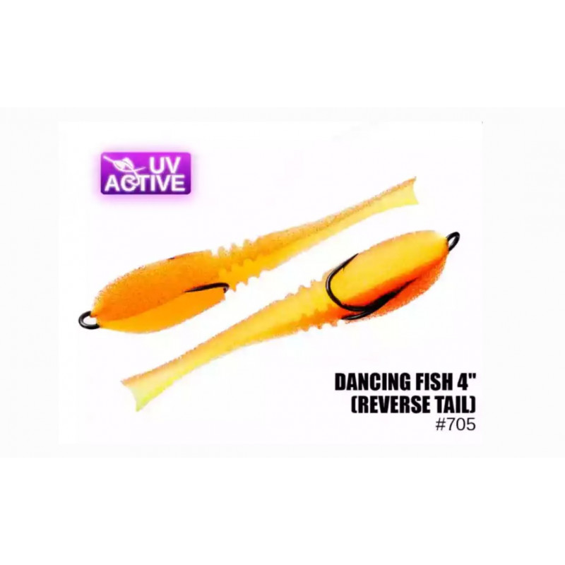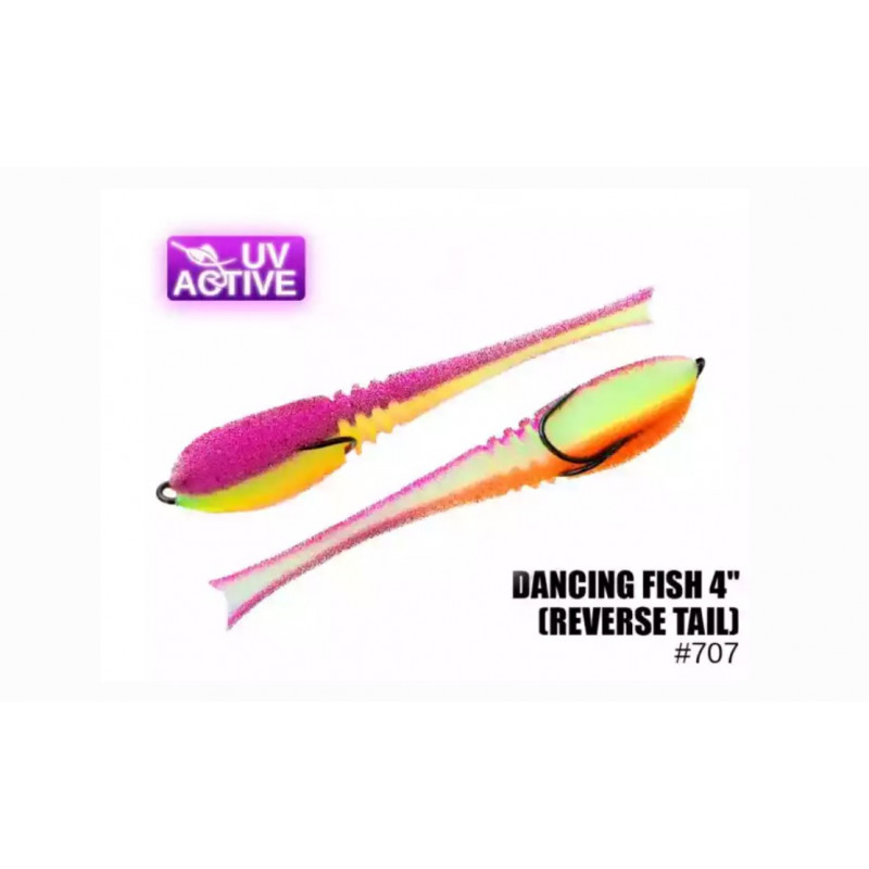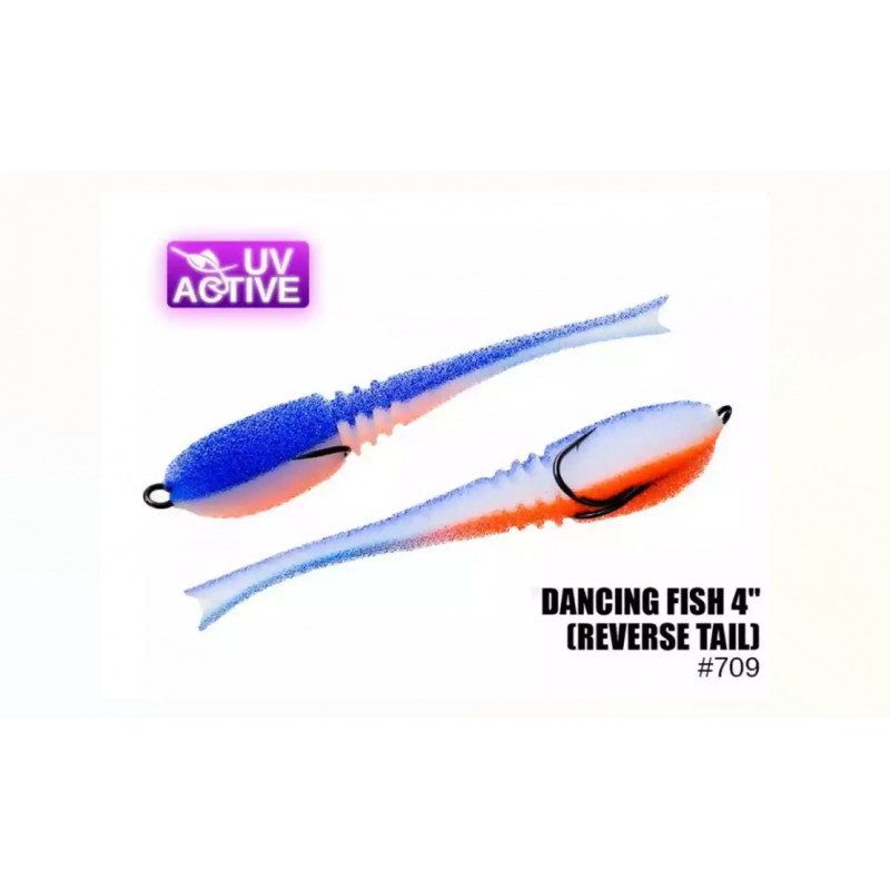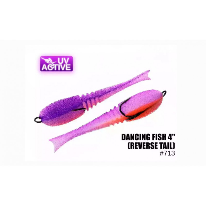 Prof Montazh porolona zivtiņas Dancing Fish 4'' (Reverse Tail) 10cm garas - lieliski piemērots māneklis trofejas zivju medībām lielās upēs, ūdenskrātuvēs. Porolona zivtiņai ir klasiska forma ar vertikālu astes stāvokli. Ribas atrodas ķermeņa vidusdaļā lielākai elastībai un papildu trokšņa efektam. Kopā ar svaru ekscentriskā ēsma rotaļīgi lokās pat vienveidīgā iemetienā.