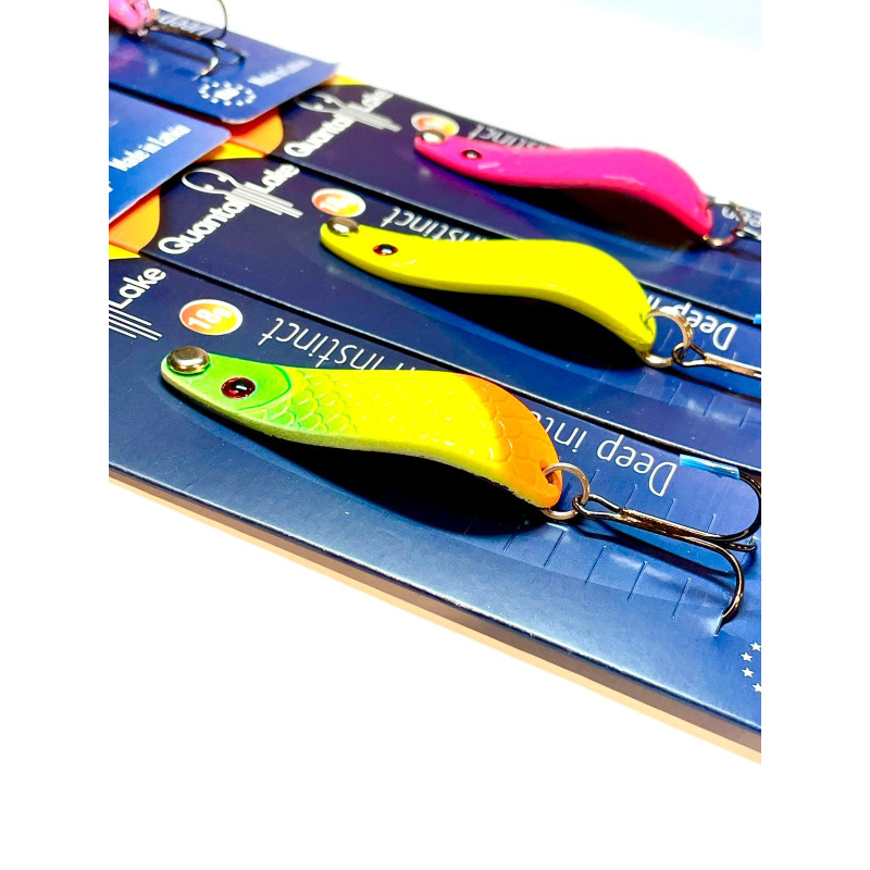 Jūsu iepirkumu grozs ir tukšs! Quantal Lake ‘’Gauja’’ 65mm/18g lašu šūpiņi UV krāsās, Made in Latvia. Izstrādāti speciāli straumes apstākļiem, stabili notur vēlamo dzīļuma horizontu un aktīvi "spēlē". Izgatavoti ar liešanas tehnoloģiju no pašu izstrādāta vieglmetāla cinka sakausējuma, ļoti precīzas reljefas detaļas un formas. Aprīkoti ar labas kvalitātes VMC āķiem. Šie šūpiņi ne tikai pievilcīgi izskatās, bet arī reāli ķer zivi – līdakas, meženes un deva ļoti labus rezultātus lašveidīgo copē Gaujā un Salacā.