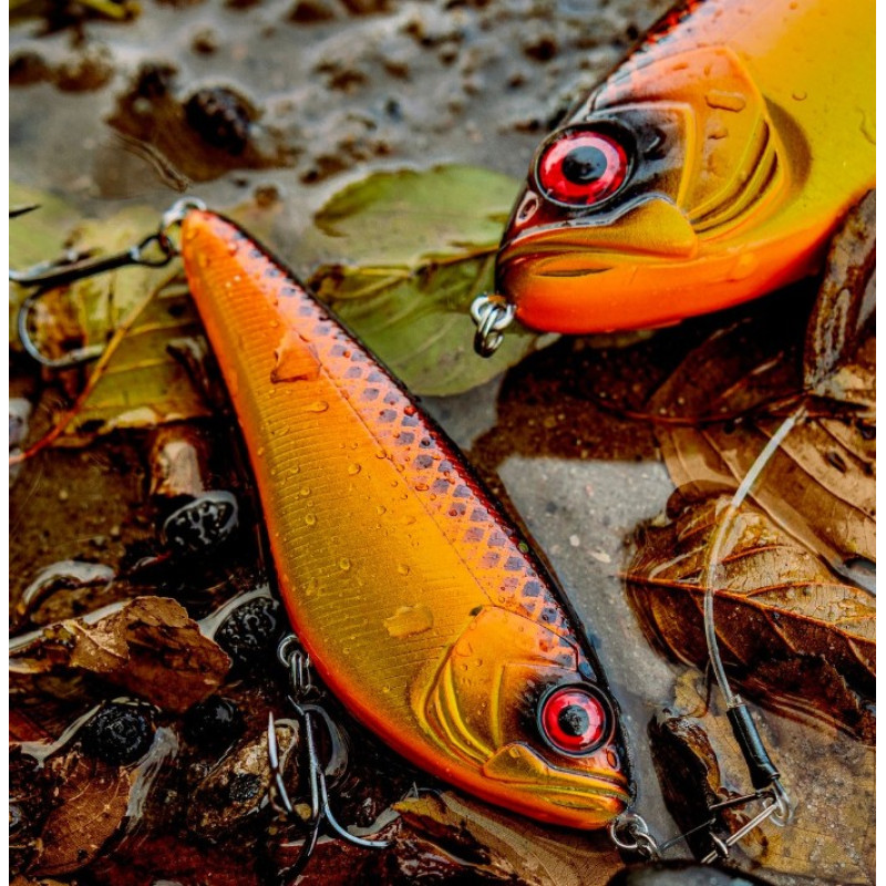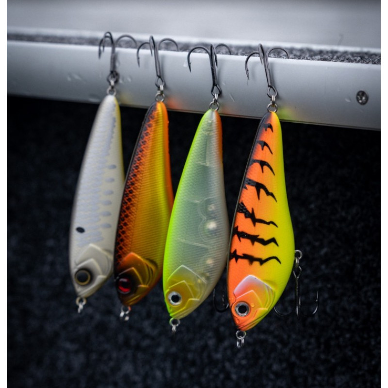 Shimano Yasei Javelin Jerk 160SP (160mm, 98.5g, 0-1.5m, Suspending) Suspending īpašība nozīmē, ka pauzēs māneklis paliek darba dziļumā, ļaujot plēsējam ilgāk to aplūkot un bieži izprovocējot agresīvu uzbrukumu. Jerk vadīšanā māneklis demonstrē asu, haotisku sānu kustību, kas perfekti imitē ievainotu vai dezorientētu zivi. Katrs kāta gala rāviens (vai ātrs spoles roktura pagriešanas pagrieziens) rada vilinošu un nedaudz neparedzamu slīdošo darbību, kurai lieliem plēsējiem ir grūti pretoties. Ar iespaidīgo 160 mm garumu un 98.5g svaru tas ir radīts, kad nepieciešams selektīvi provocēt lielas līdakas. Aprīkoti ar augstas kvalitātes BKK trīsžubura āķiem.